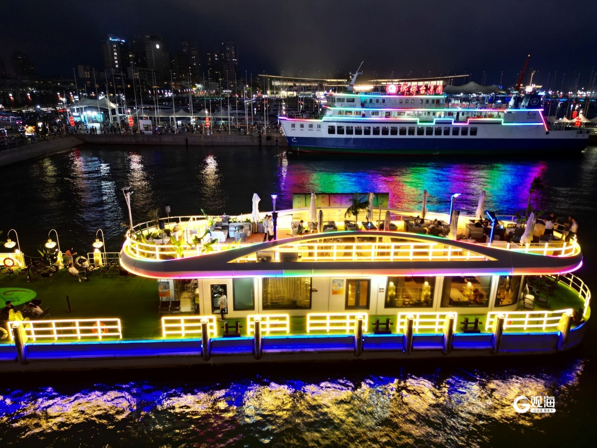 At night,Qingdao Olympic Sailing Center is Crowded with People
