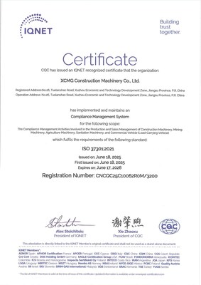 XCMG Machinery Achieves Dual ISO 37301 and GB/T 35770 Compliance Certifications, Reinforcing Global Governance Leadership
