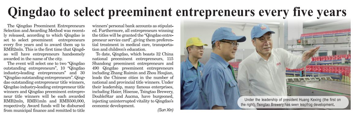 Sister-city Flash News|Qingdao to select preeminent entrepreneurs every five years