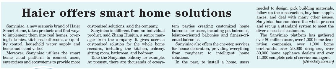 Sister-city Flash News|Haier offers smart home solutions