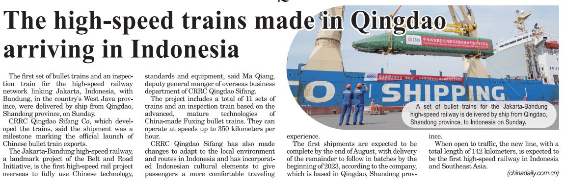 Sister-city Flash News|The high-speed trains made in Qingdao arriving in Indonesia
