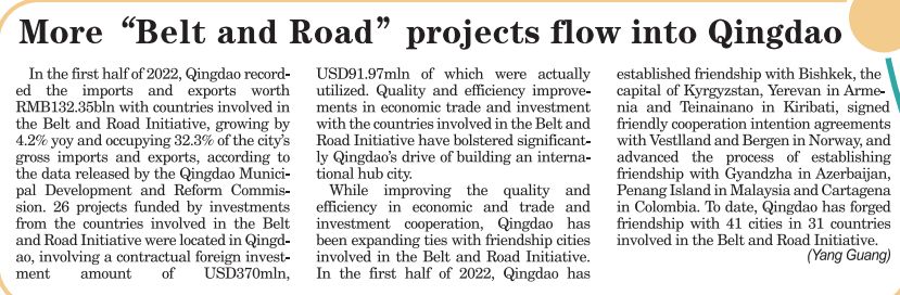 Sister-city Flash News|More “Belt and Road” projects flow into Qingdao